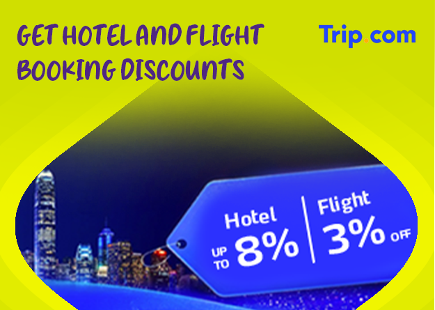 6. To claim and use the offers, cardholders must possess a valid Trip.com membership with booking made via the respective promotion page HK site: Visa coupons/offers are only applicable to hotels, air tickets. To receive 5% discount after taxes and fees for eligible hotel bookings and 2% discount before taxes and fees for eligible flight bookings, enter the promotion code.